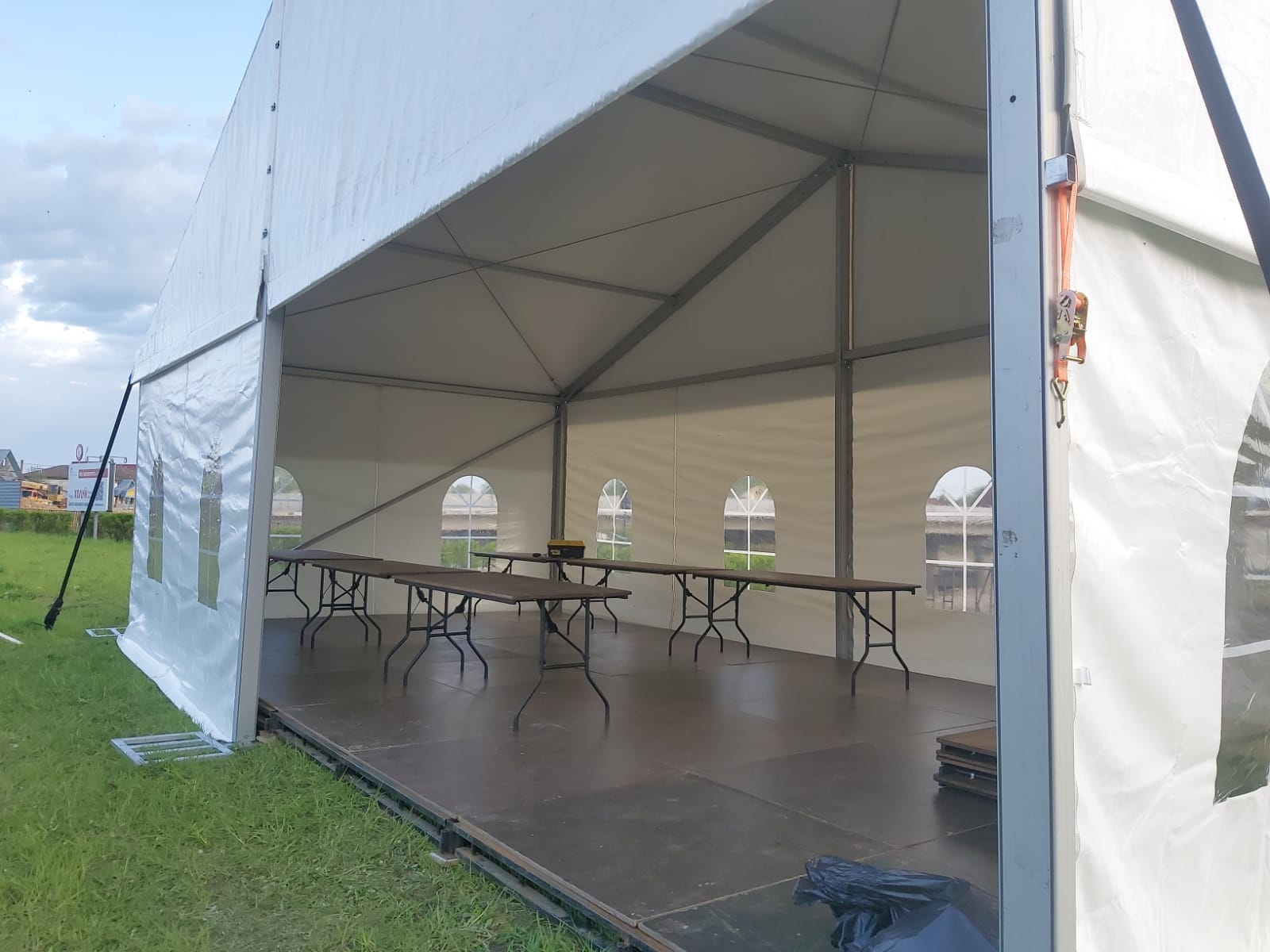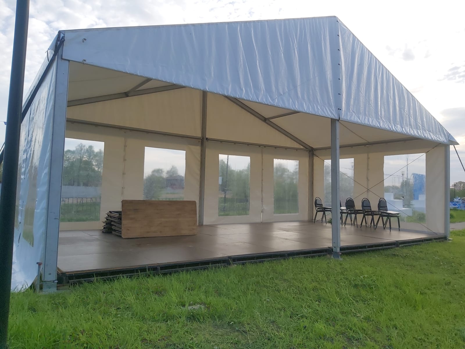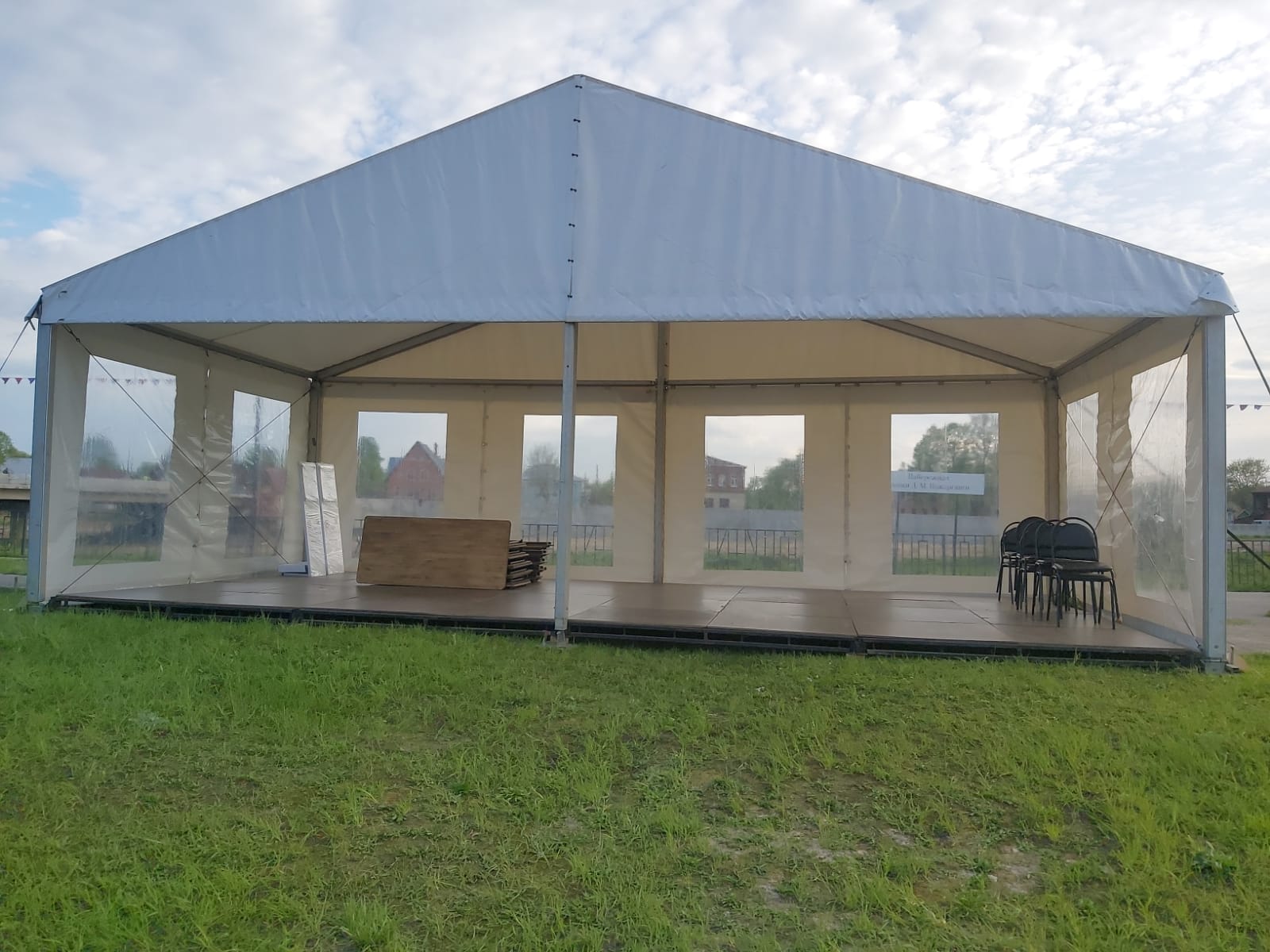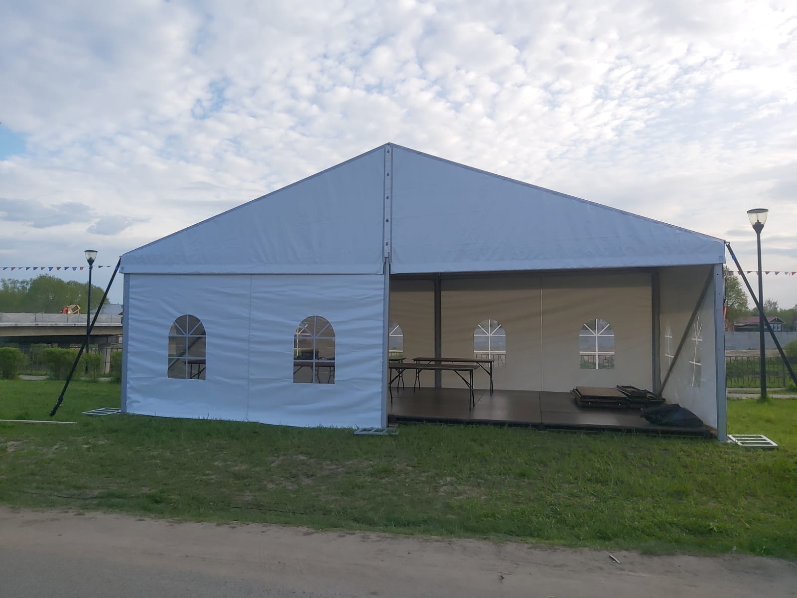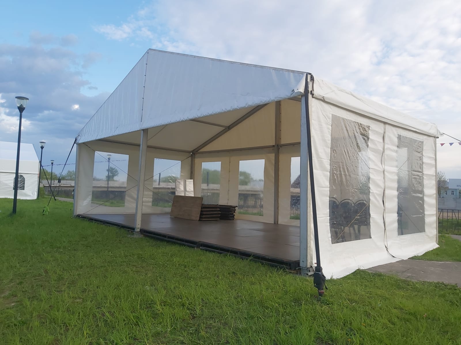 Оборудование: подиум, звуковой комплект Turbosound, шатры