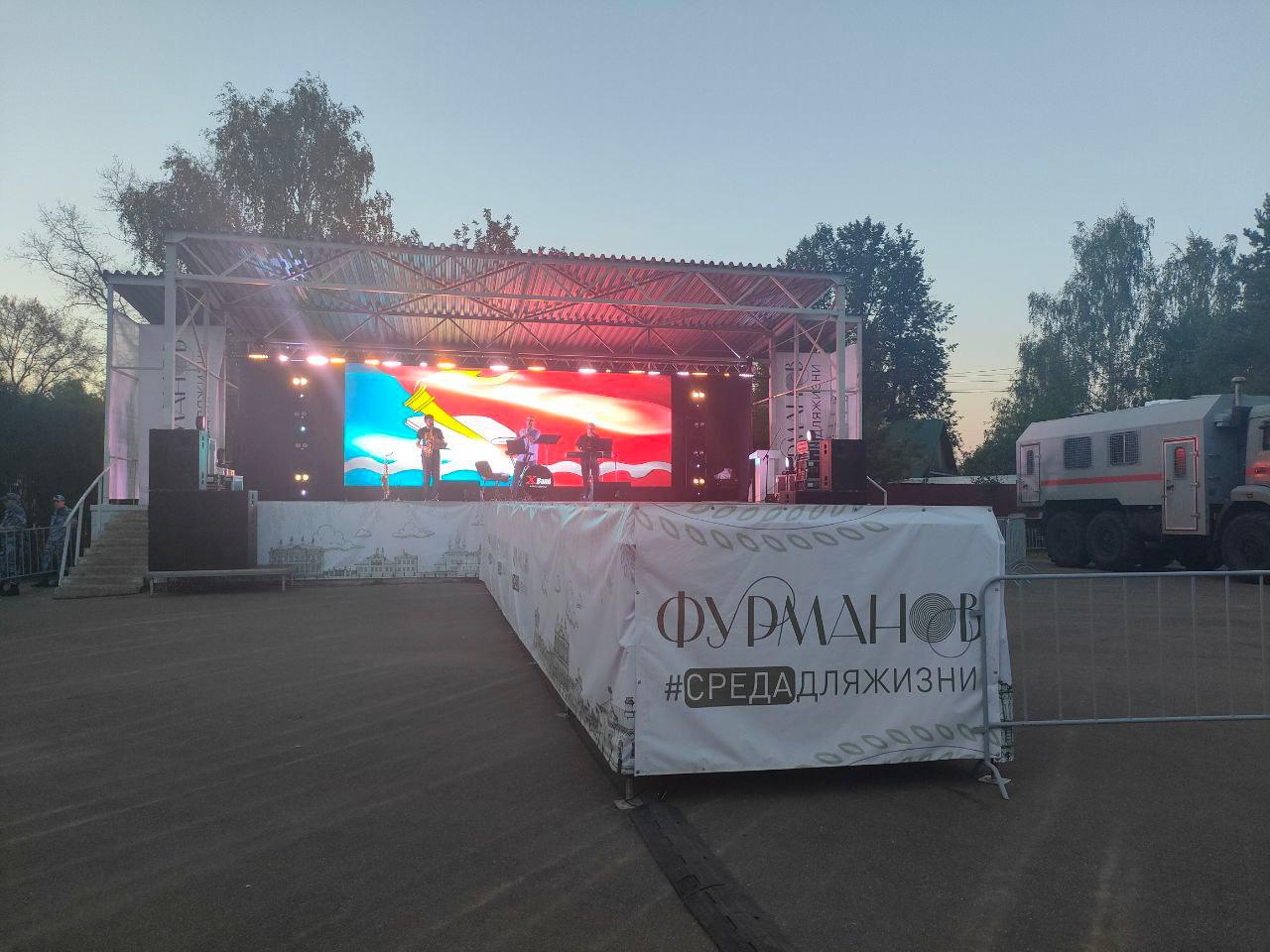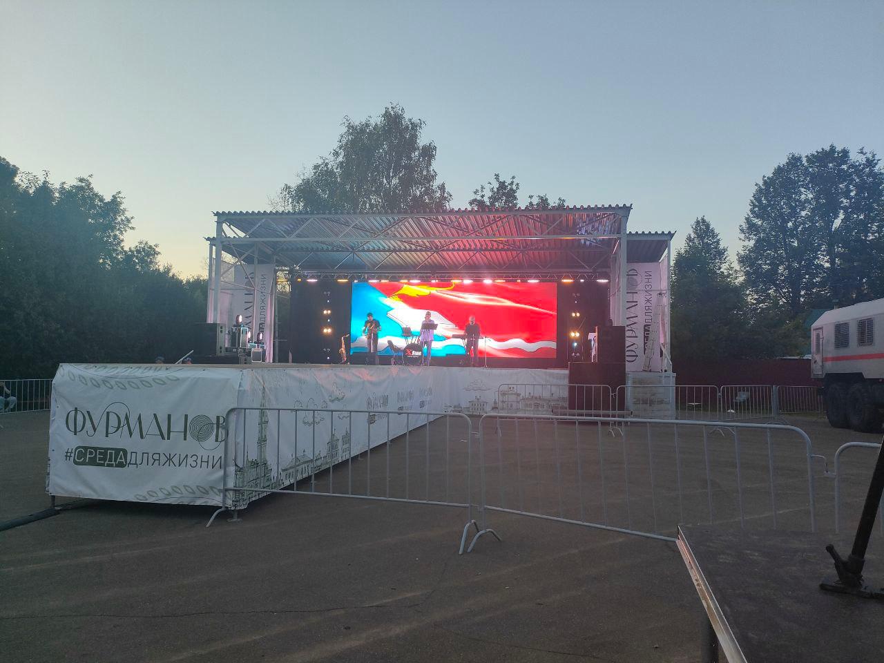 Оборудование: Сценические конструкции, LED-экран, световое оборудование