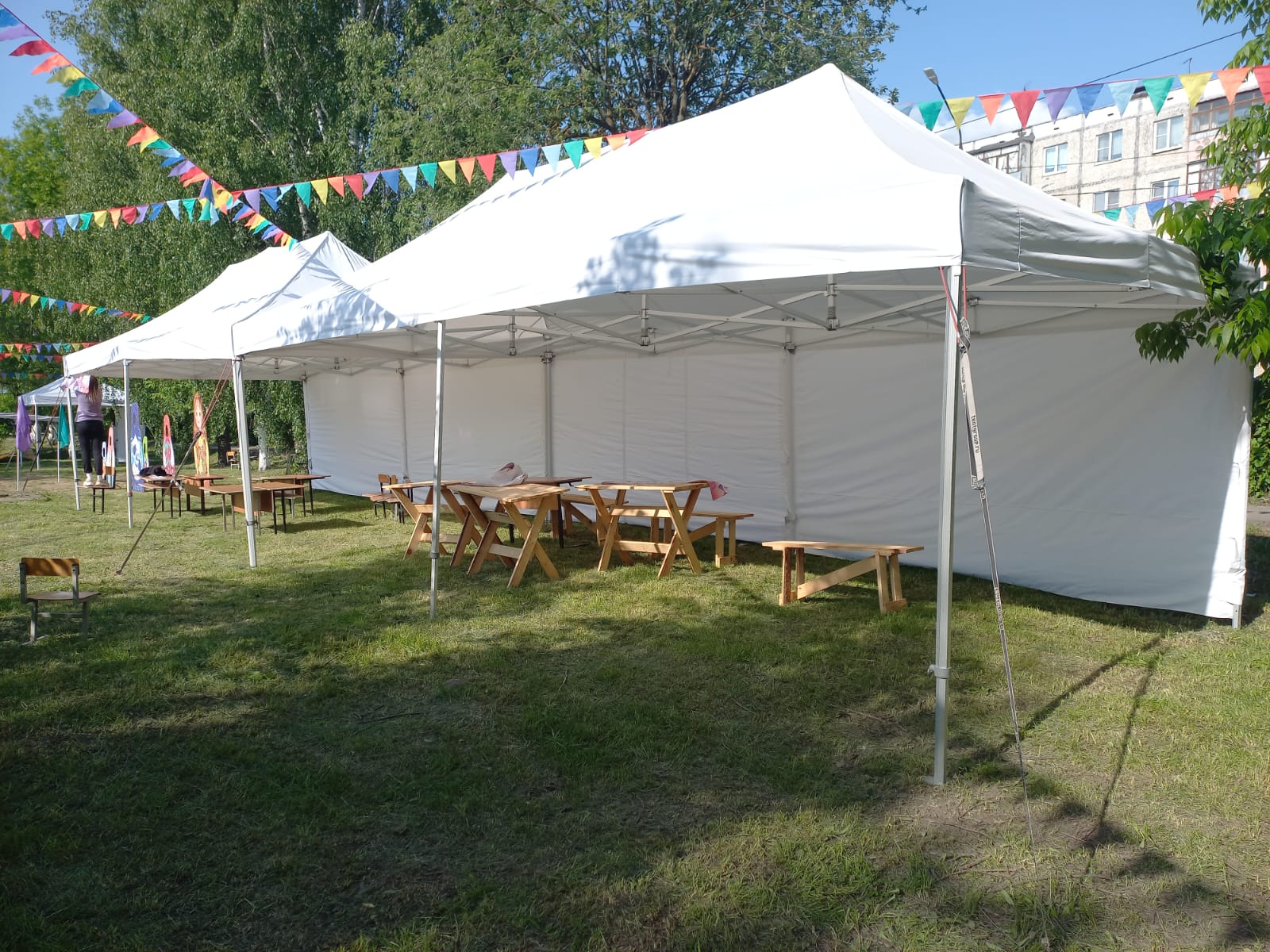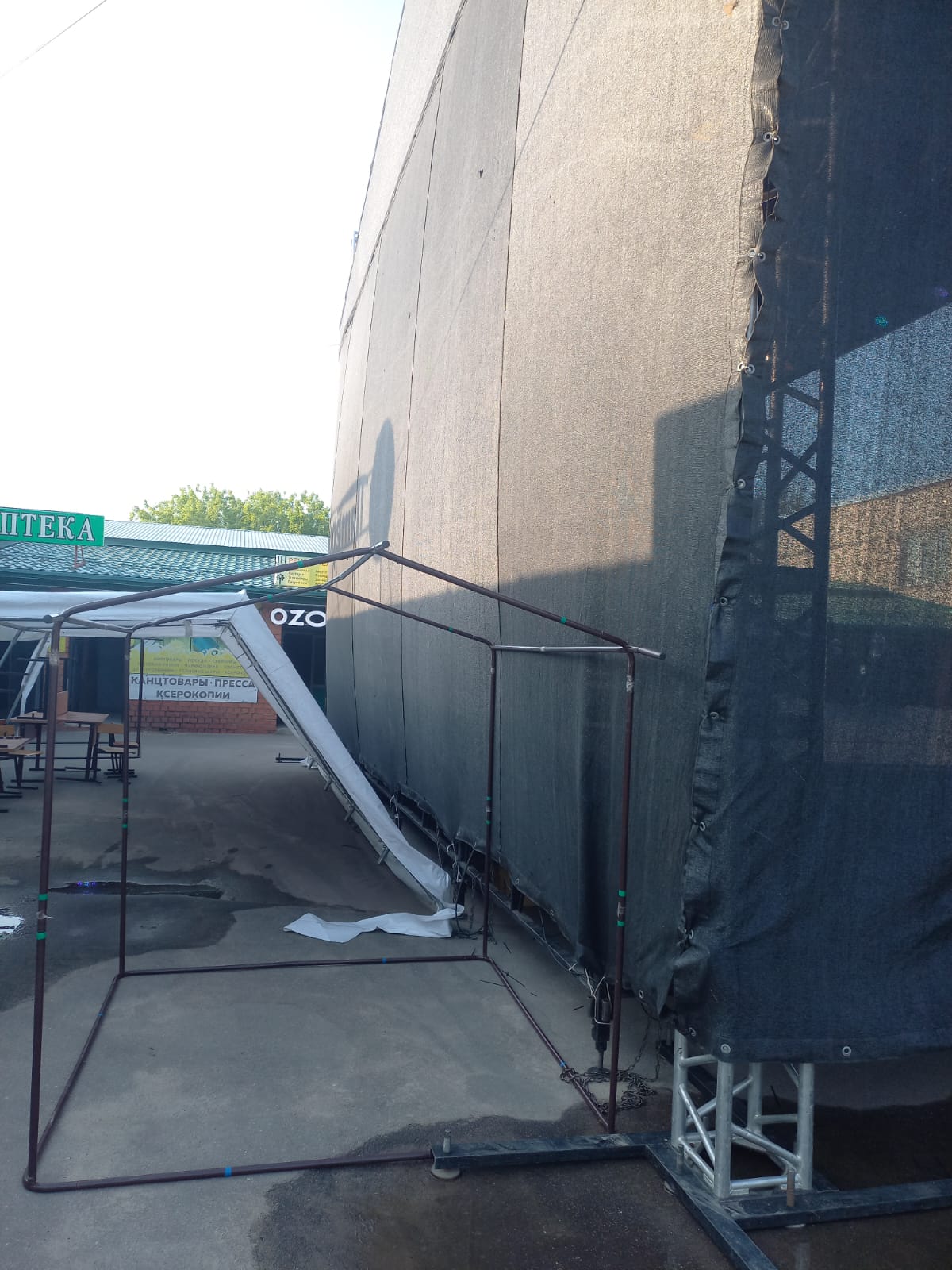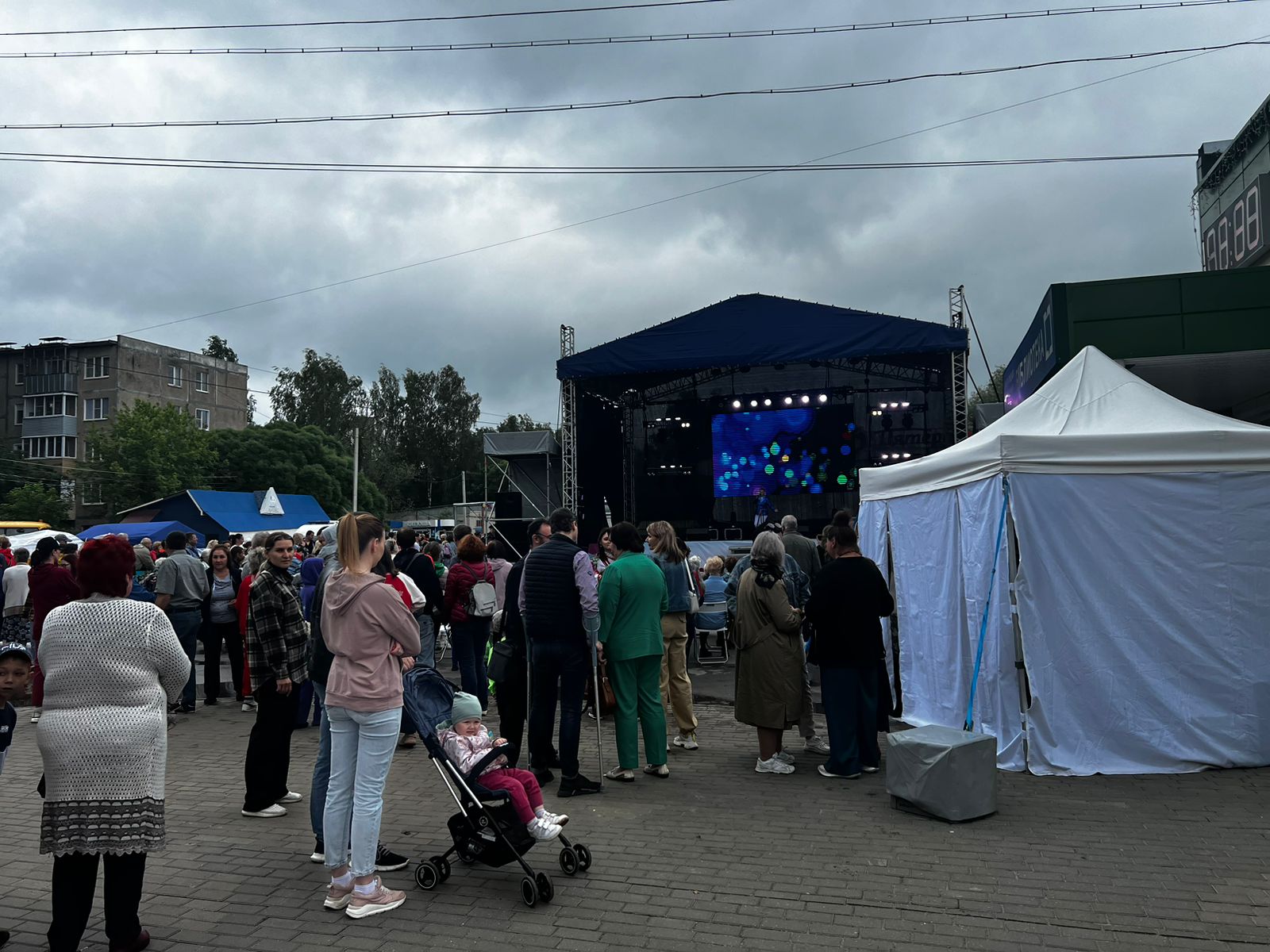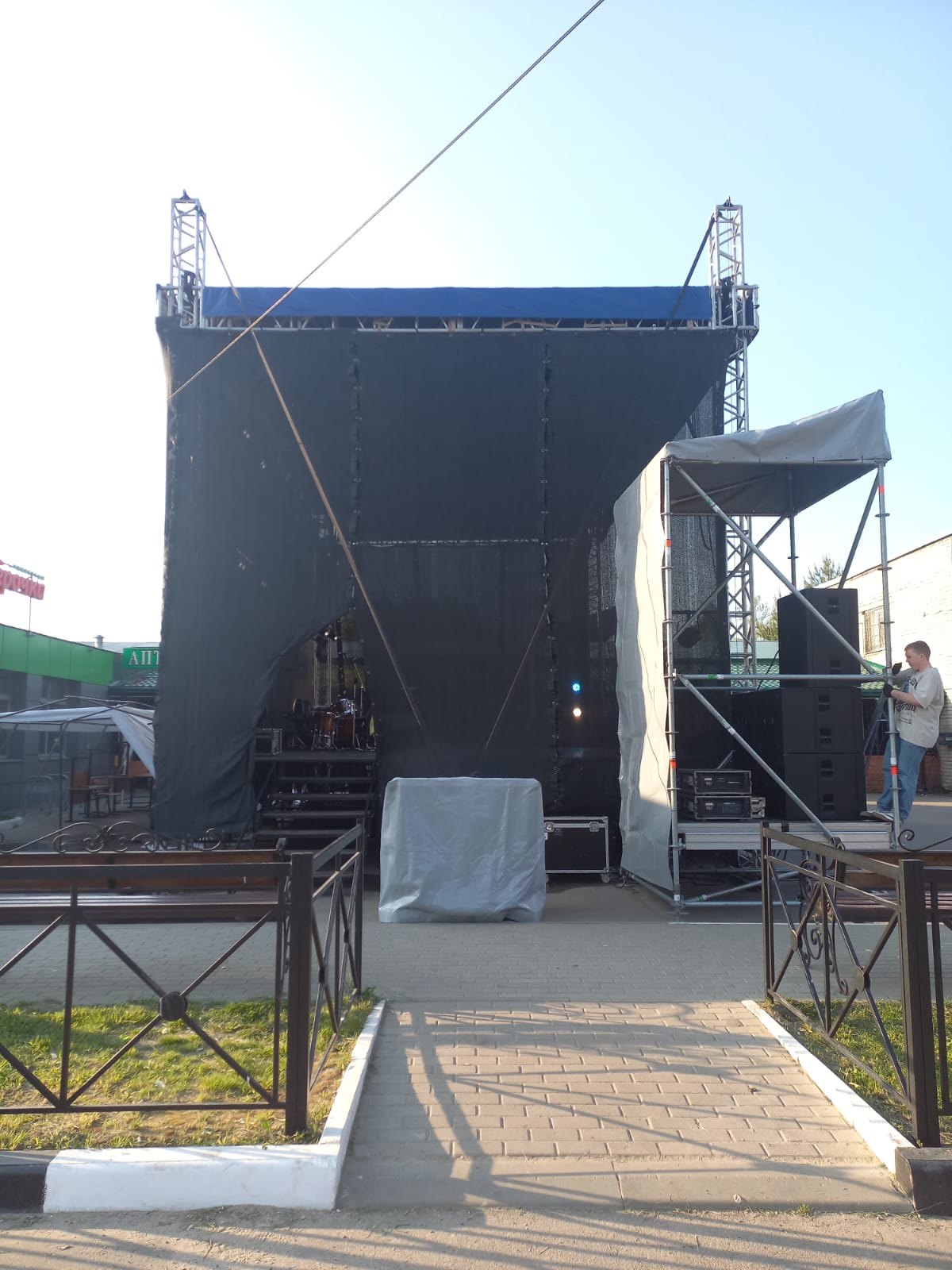 Оборудование: сцена 9,6*7,2 м. + порталы под звук, LED-экран 3*4м, звуковой комплект VHD 10KWt, свет