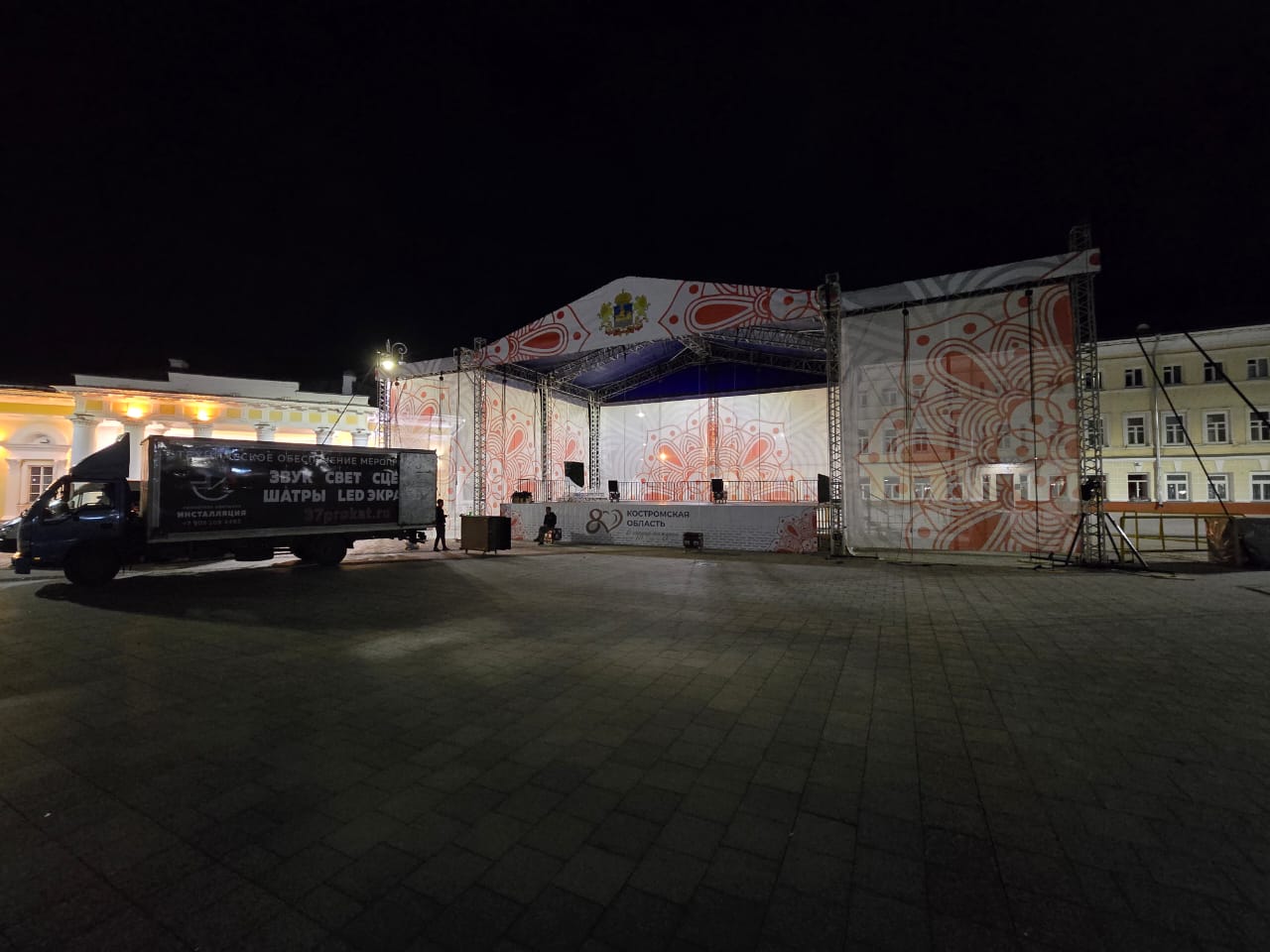 Оборудование: Сцена, звуковое и световое оборудование, шатры, LED-экран