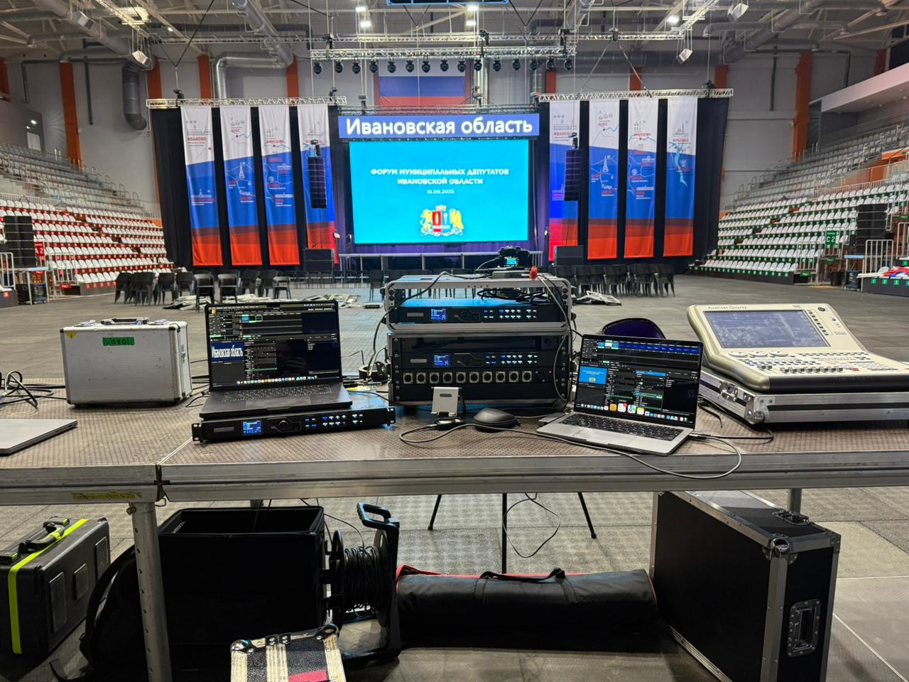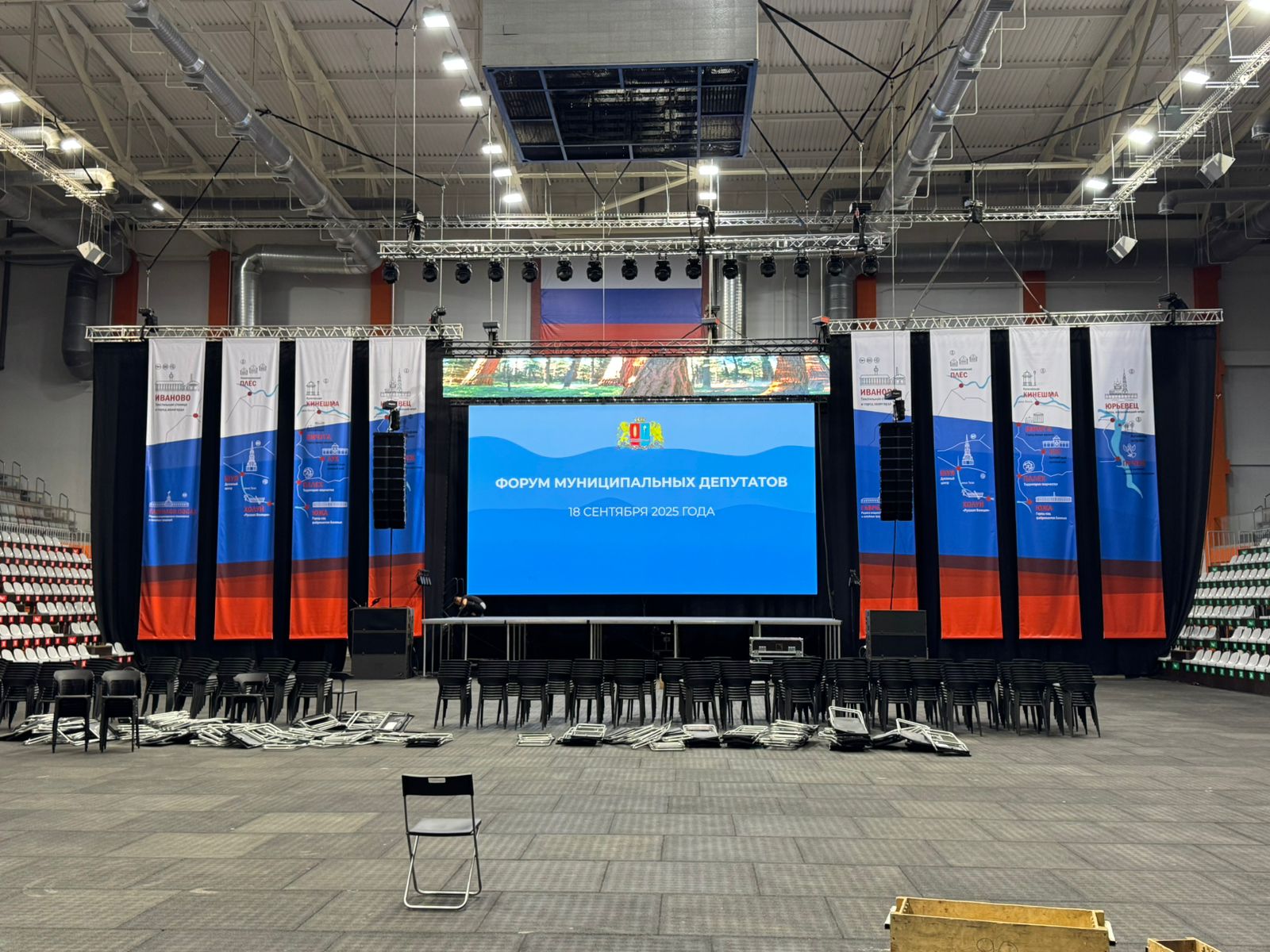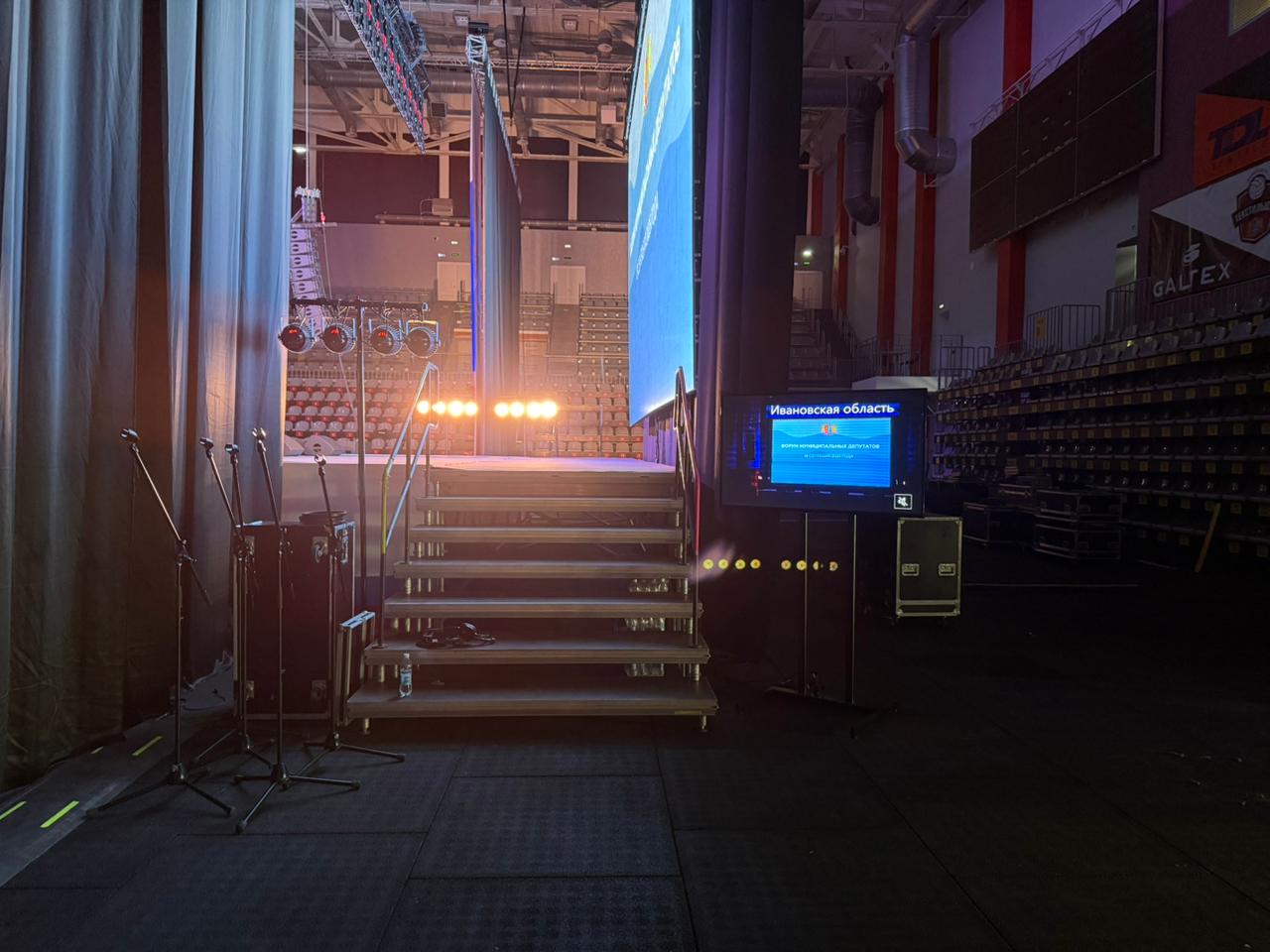 Оборудование Звуковое и световое оборудование, светодиодный экран, подиум, фермовые конструкции
