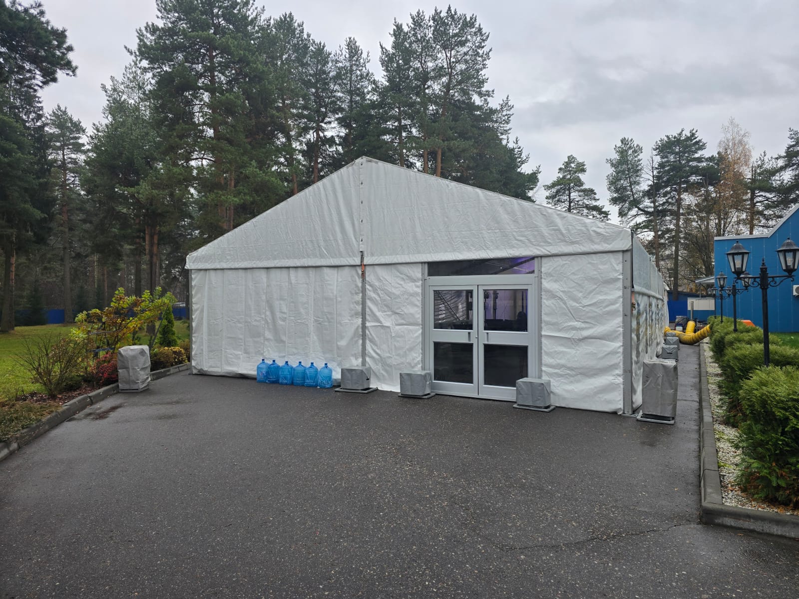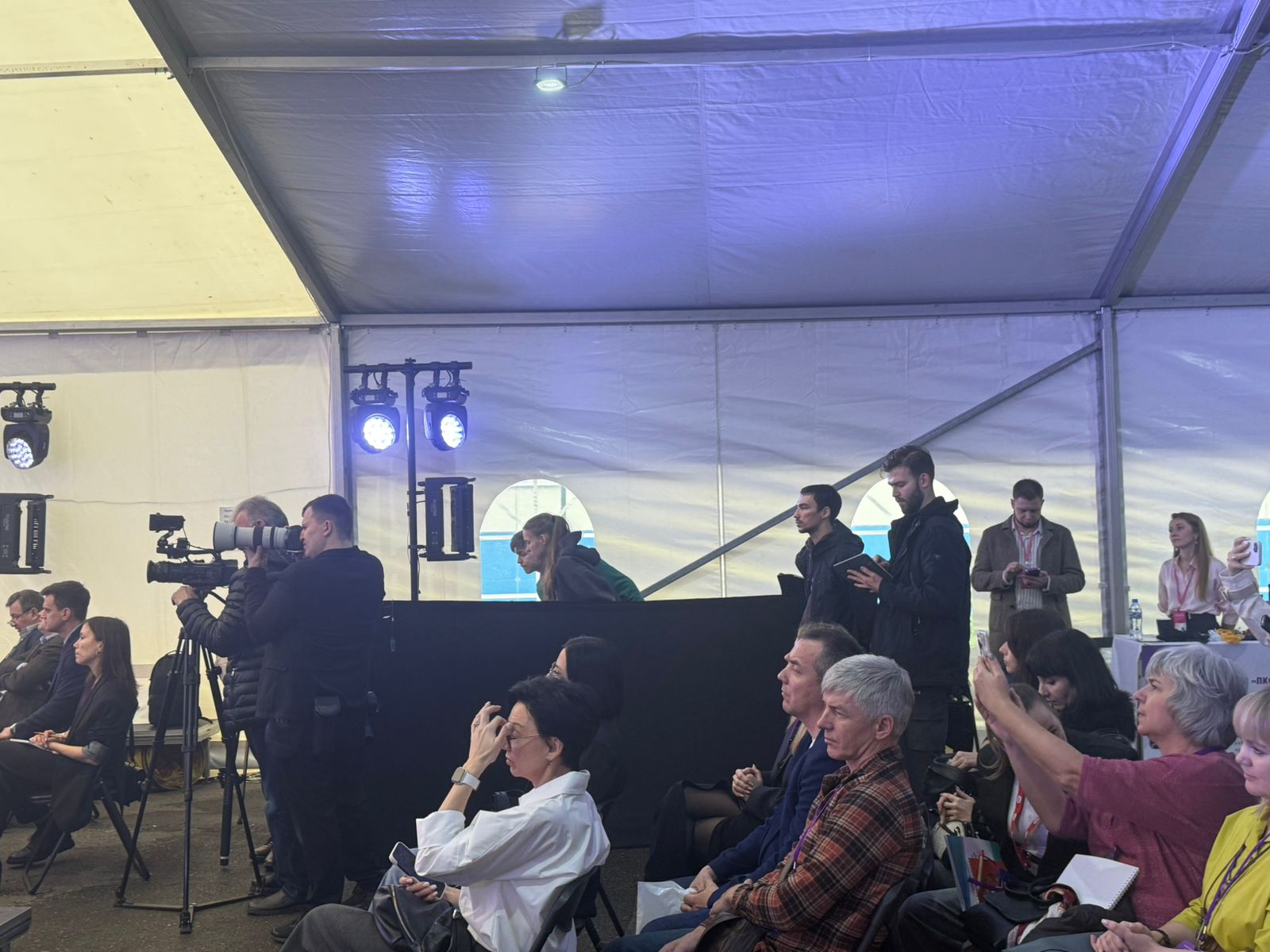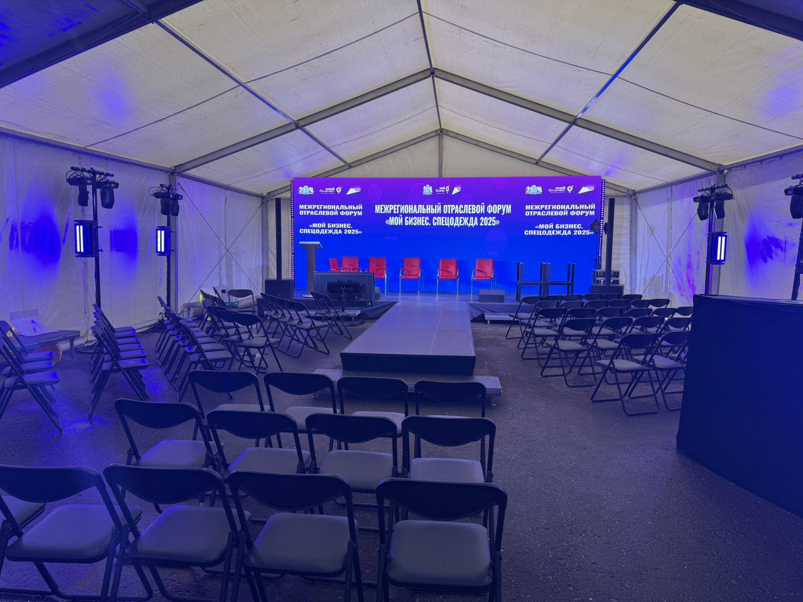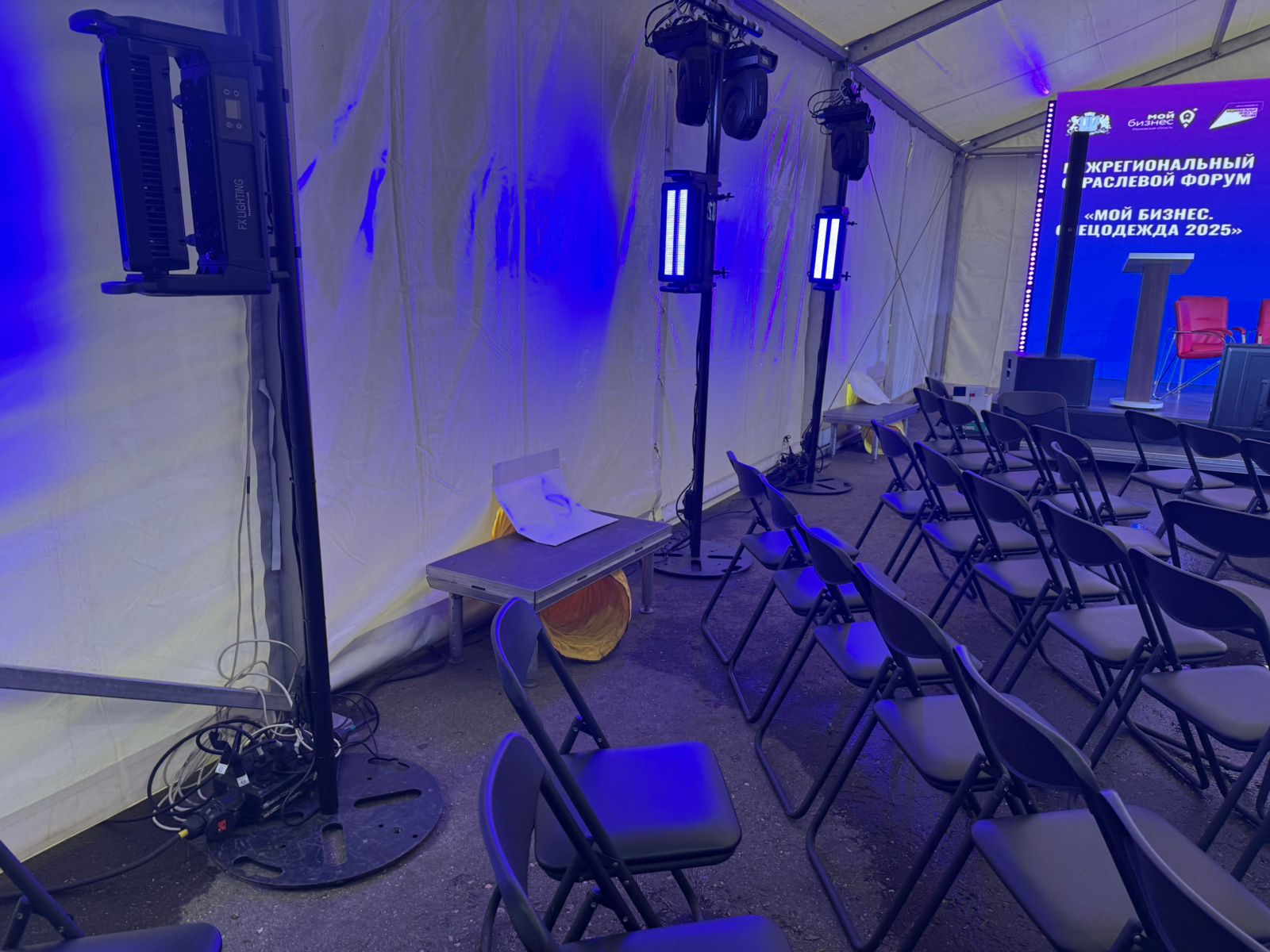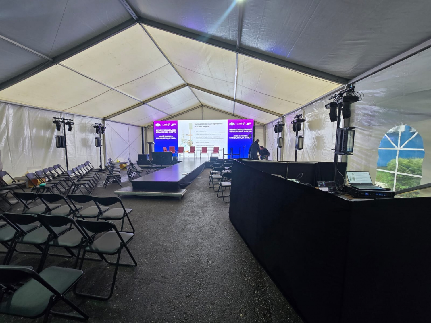 : Шатёр 30м*10м, звуковое и световое оборудование, экран, подиум, обогреватели