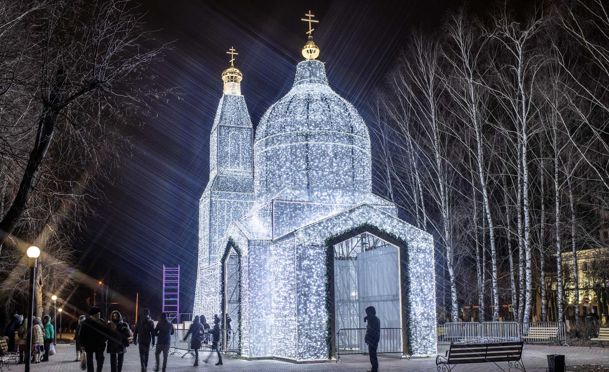 "Храм" – символ фестиваля "Русское Рождество". Арт-объект высотой с 5-этажный дом повторяет очертания храма Спаса Нерукотворного – одного из самых красивых и древних храмов города, разрушенного в 1930 г.