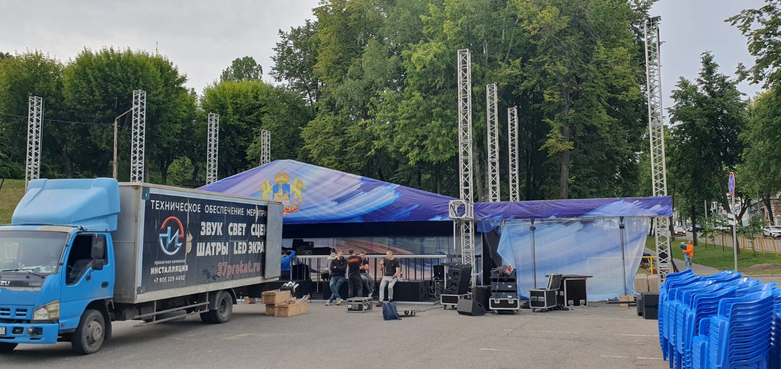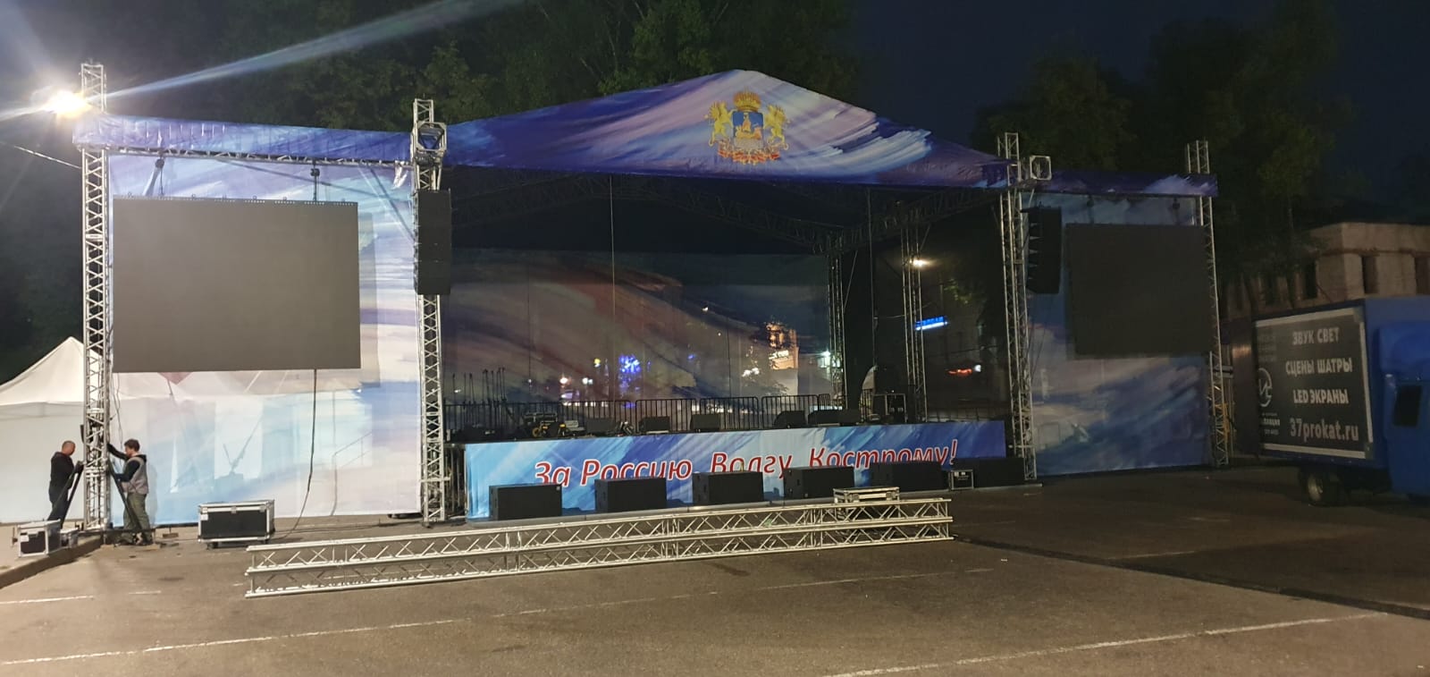 Оборудование: Сцена, LED-экраны, световое оборудование, звуковое оборудование