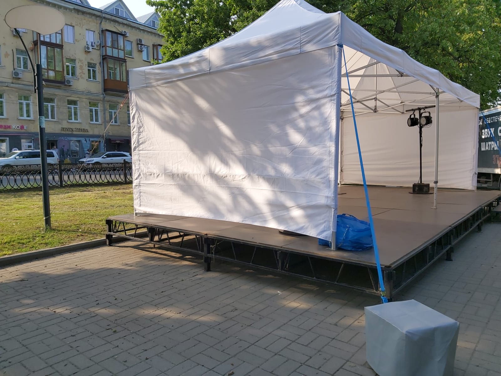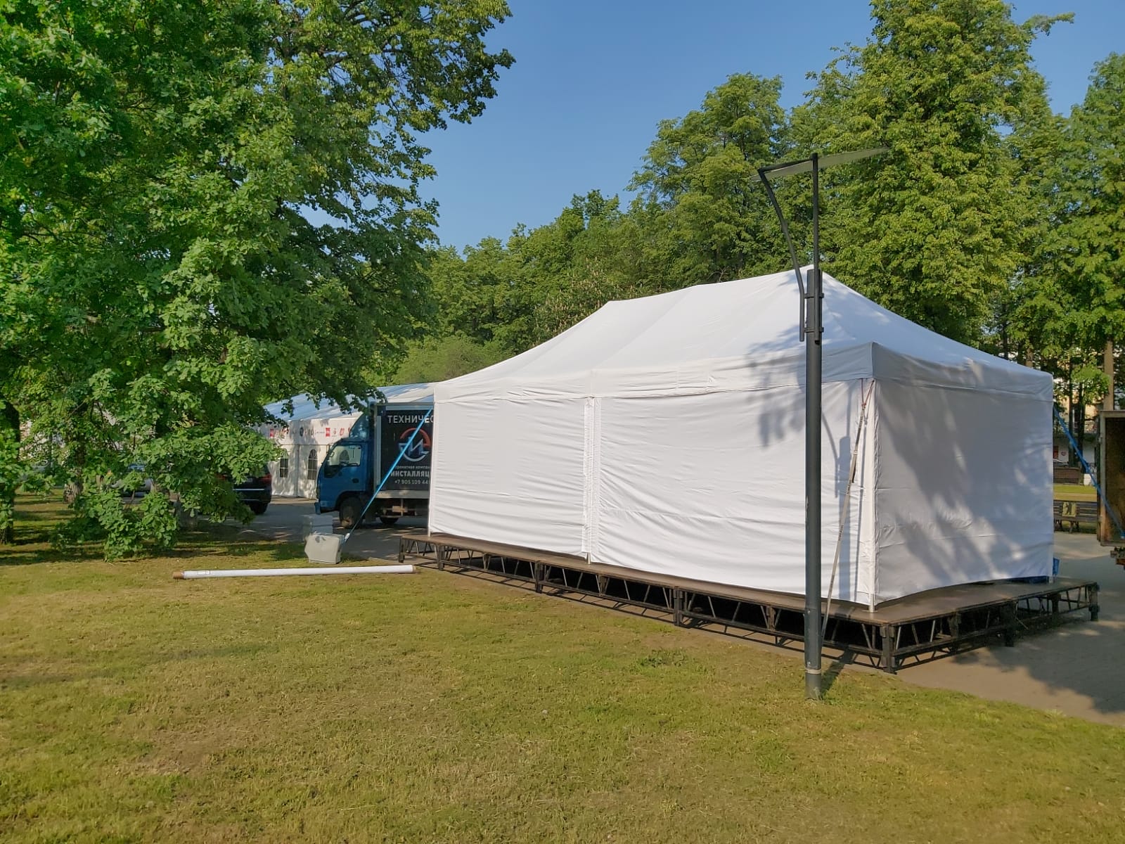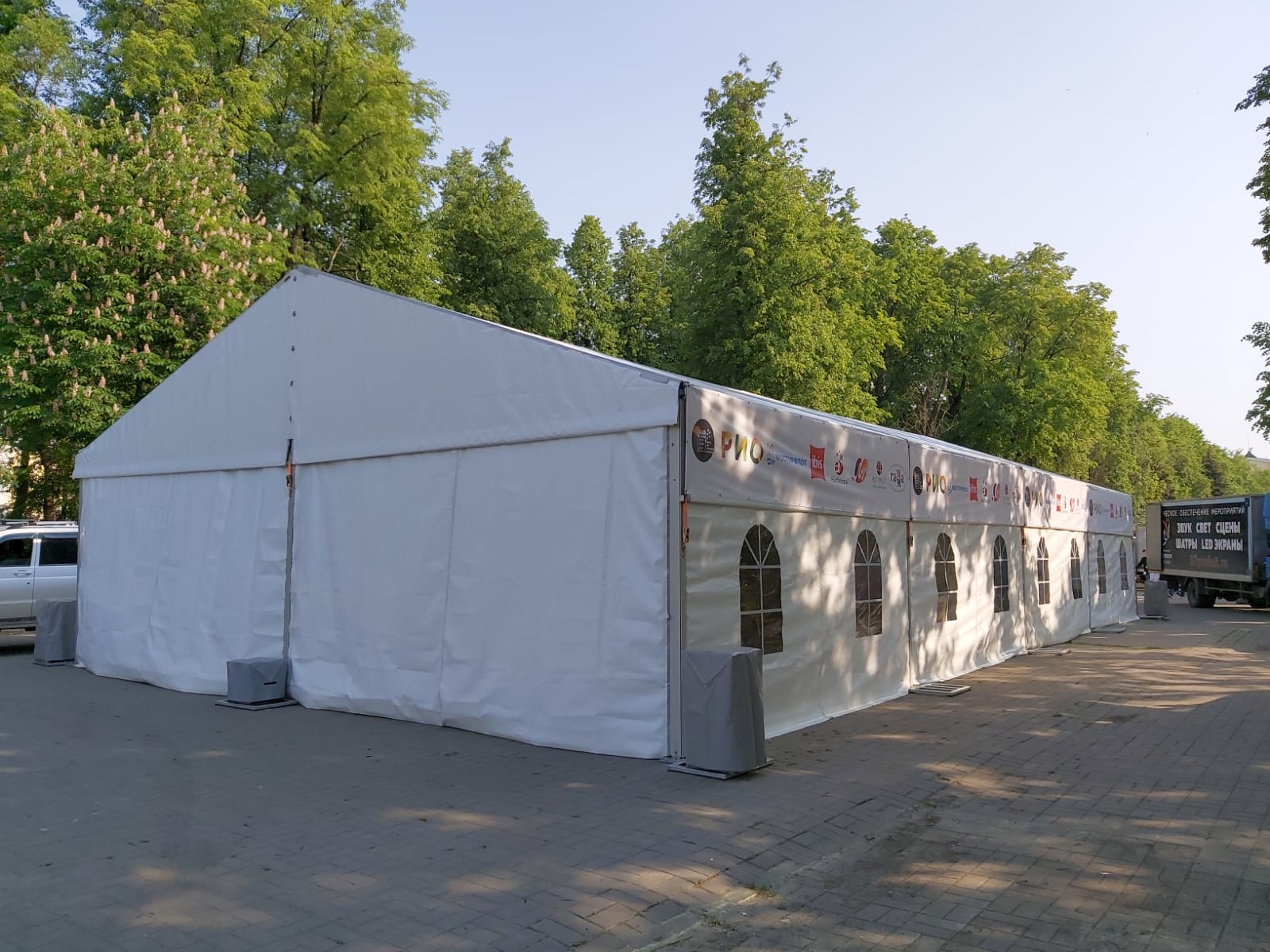 Оборудование: Шатёр 20*10, шатёр 8*4 + подиум, стойки под баннеры, свет в шатры
