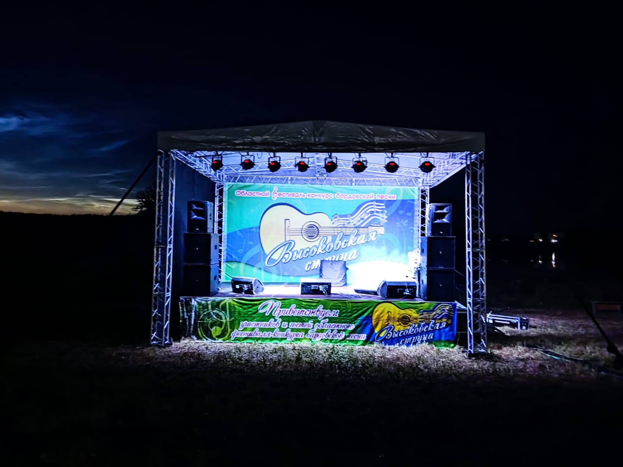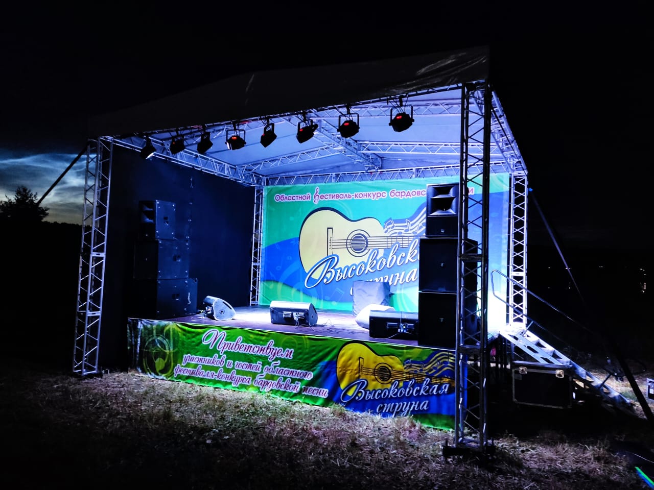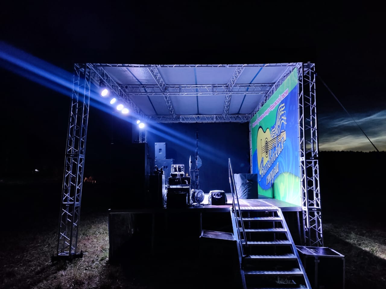 Оборудование: Сцена, звуковое и световое оборудование, палатка звукооператора,